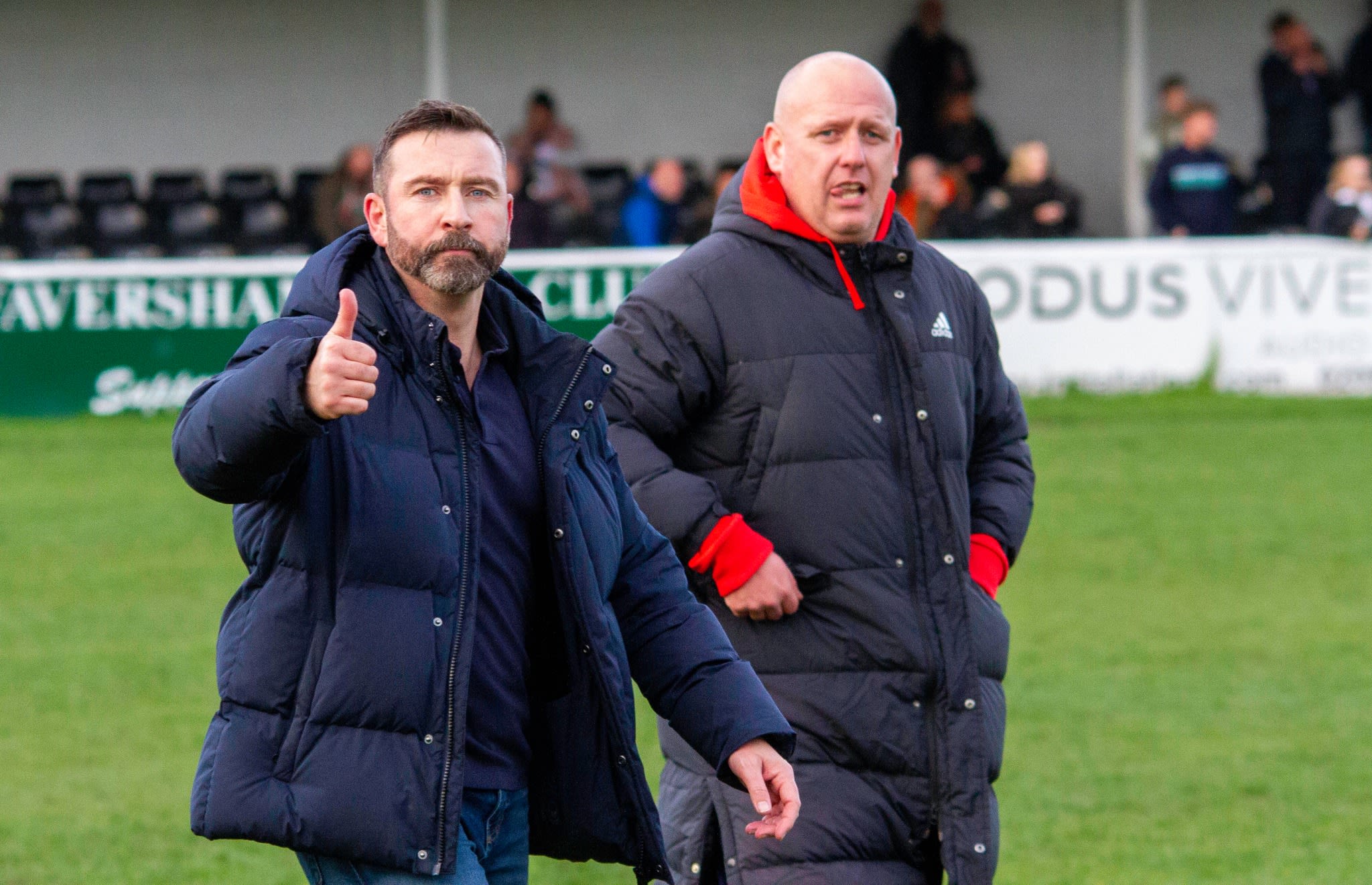 Ryan Maxwell (left) after 1-0 away win against local rivals Faversham Town: Courtesy of Glen Parkes